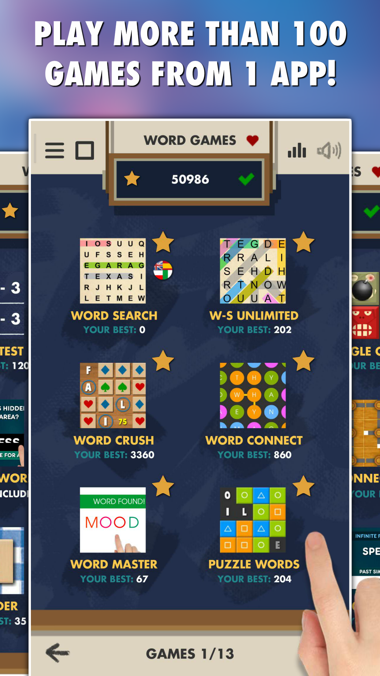 ⭐⭐⭐⭐⭐ "Completely amazing word game app! Any word game you can think of (any many you have never imagined!) are included in this app! If you can't find at least one that you like in this collection, then there is most likely no game on the planet that you would like! The variety of games (mostly word games, but a few extras are thrown in to give your brain a rest🤯!) is simply astounding! I find myself spending a lot of time here without getting bored! Great job devs, 5+🌟s!"